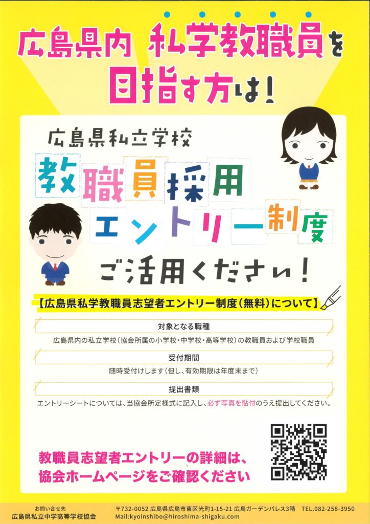 また、広島県私立学校では教職員採用エントリー制度もあります。