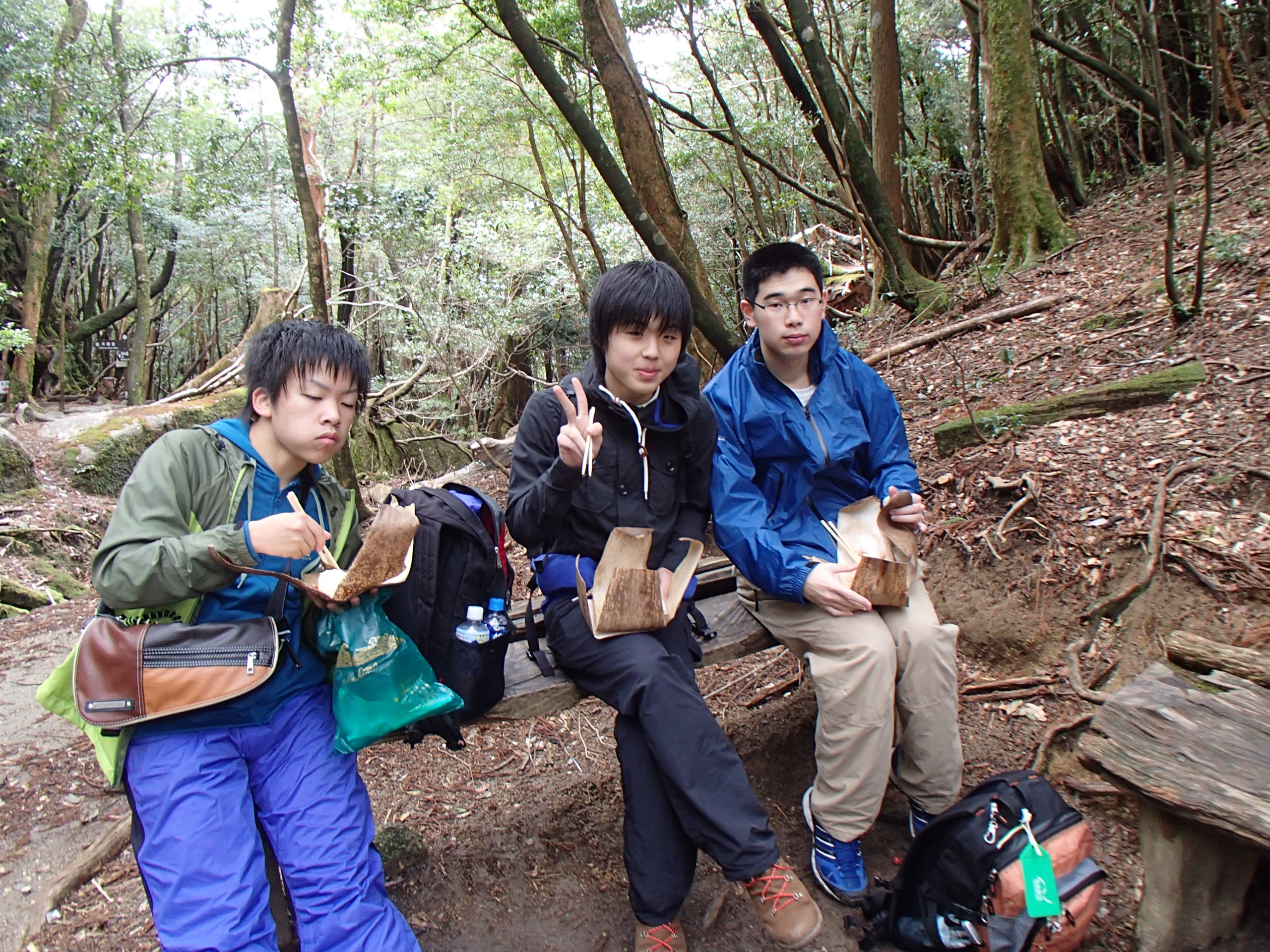 安全な場所で昼食(太鼓岩の上は飲食禁止です)。